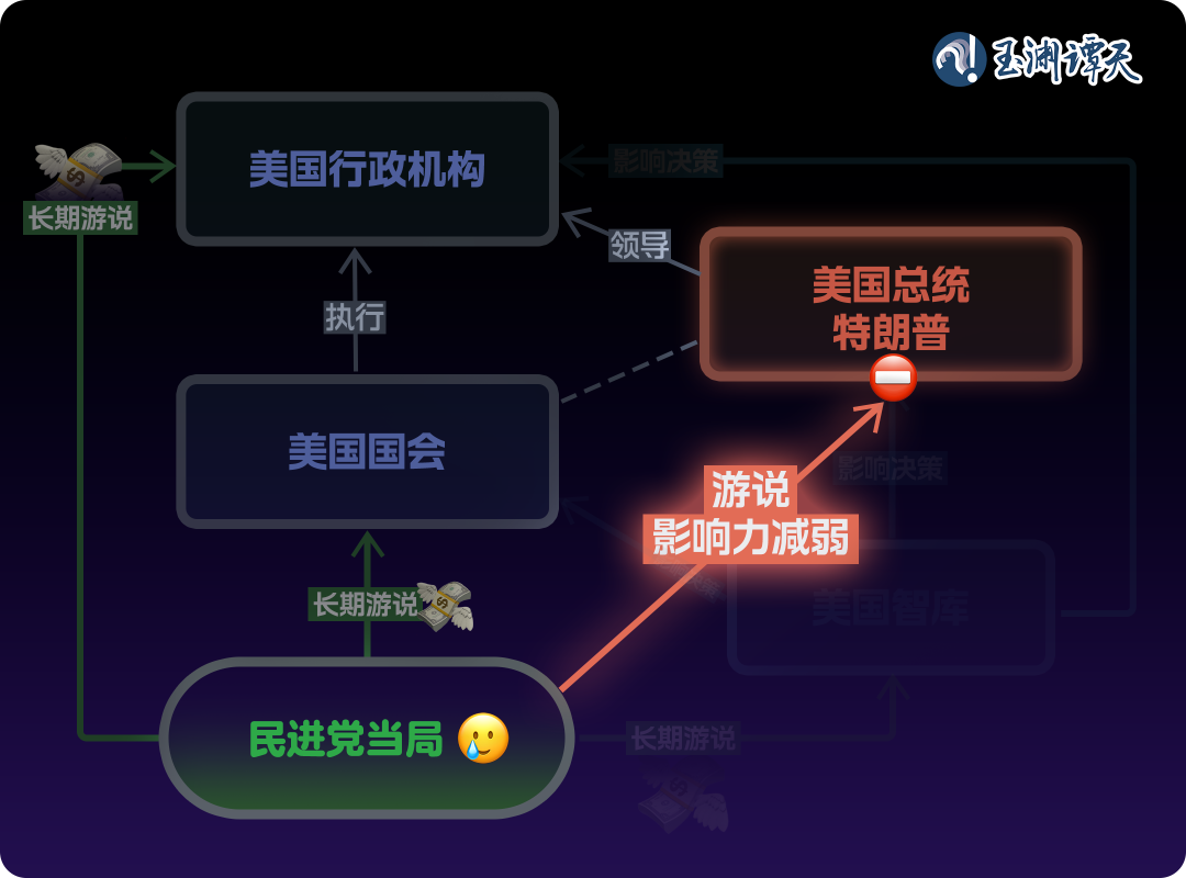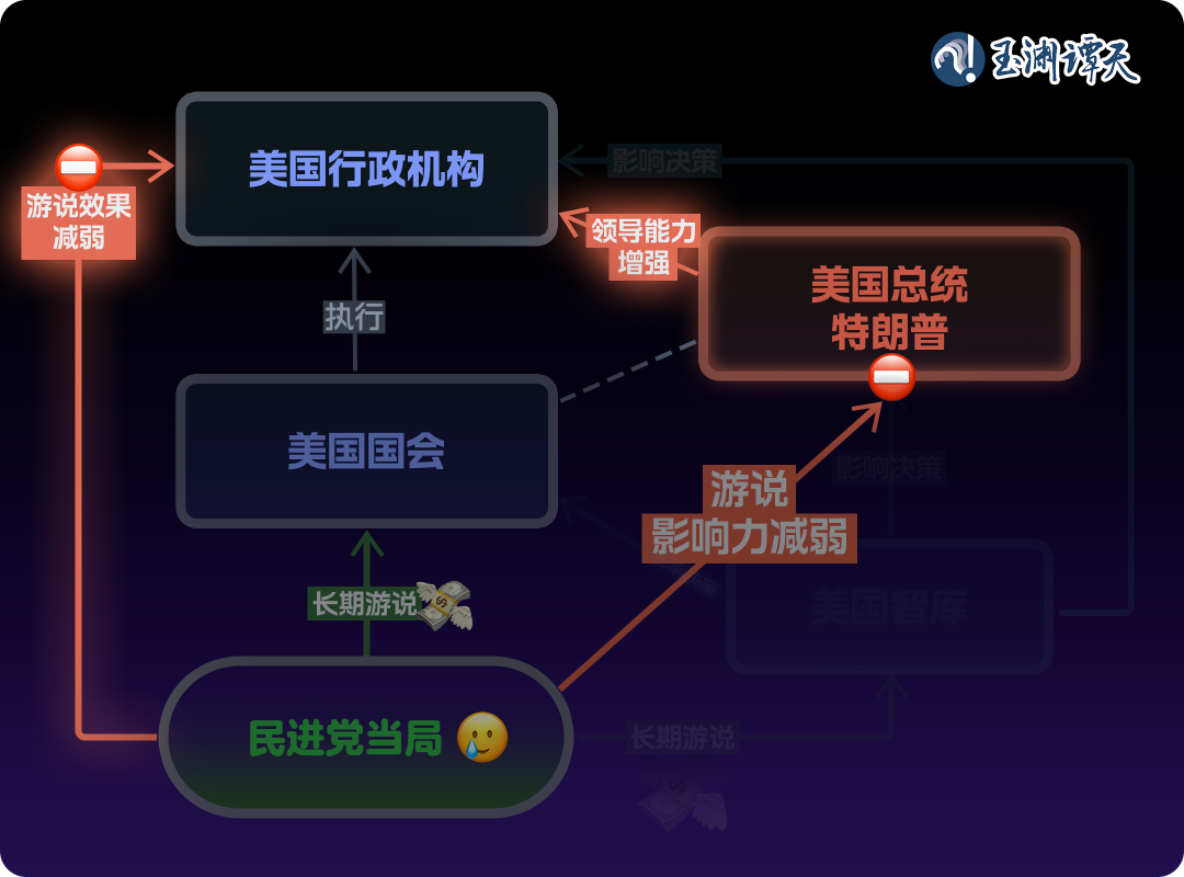 除了接触特朗普本人以及美国官员这条明线,过去八年,民进党当局经营的其他间接影响美国涉台政策的暗线,同样在被削弱。