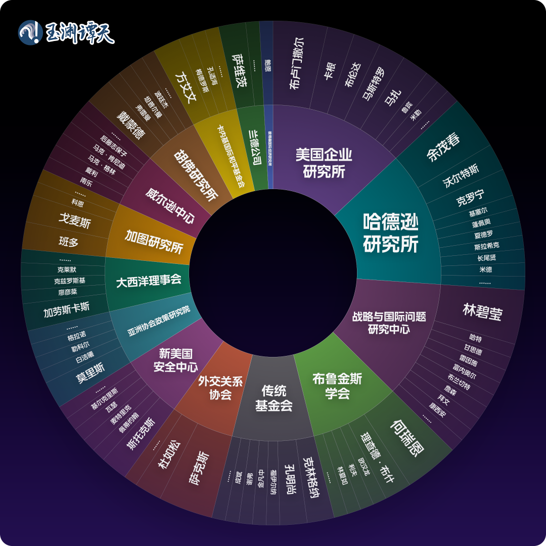 再回到这张流程图,观察这些暗线的起点,是美国智库。