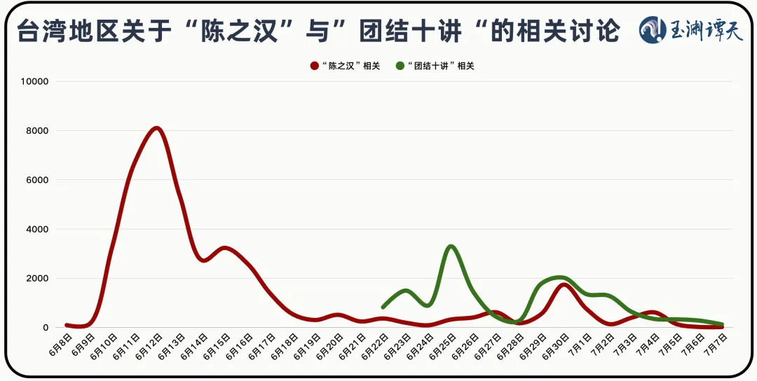 后来,赖清德的“第三讲”和“第四讲”热度越来越低,陈之汉的大陆之旅反而不断出现关注峰值。