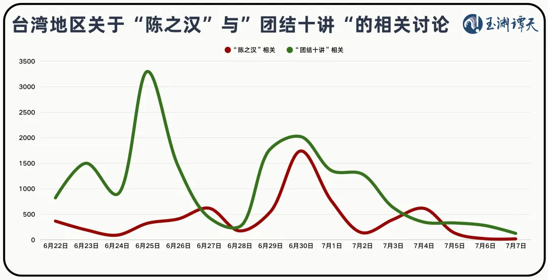 很明显,陈之汉大陆之旅引发的讨论远高于赖清德所谓“团结十讲”,是其2倍多。