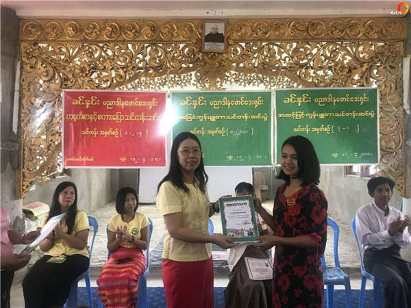 2018年4月12日上午9点,会话班小学一年级上、小学二年级下班的结业典礼在洞善灵寺庙教学点举行。大家拜佛然后善灵寺庙教学点的缅方负责人吴钦茂吞讲开幕词。接着颁发毕业证。今天是汉语班和电脑基础班一起颁发证书,然后毕业生代表讲谢辞。毕业典礼圆满结束。