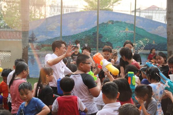 泼水节,作为缅甸传统的新年庆典,象征着洗净一切不幸并迎接新生的开始。在这一重要的节日里,新世纪国际中文学校积极融入本地传统习俗,组织师生一同庆祝,通过这种传统方式增强学校师生间的团结与互动。