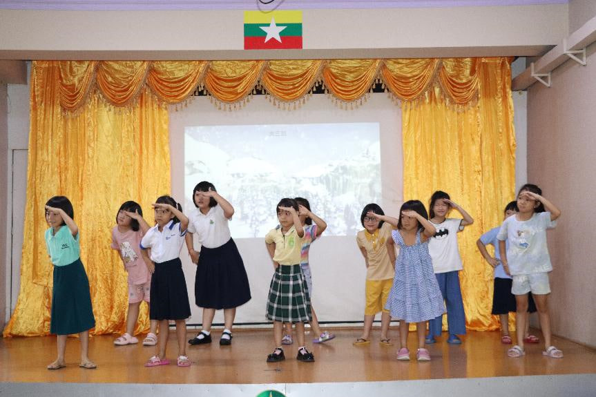 2024年9月16日,缅甸新世纪国际中文学校曼德勒幼稚园如期举办了每周的国学活动。本次活动中,幼稚园的孩子们按年级和班级分成不同的方队,依次进行才艺展示。小朋友们表演的节目丰富多彩,有舞蹈、猜谜语、古诗背诵以及演唱中文歌曲。