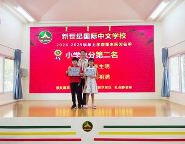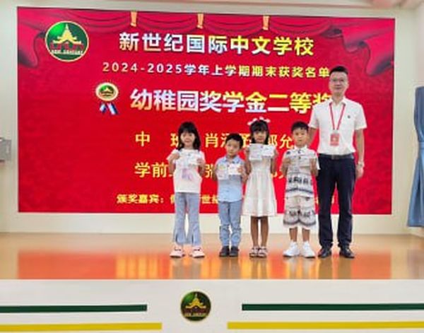 本次颁奖典礼,分别设置了各单科分数前三名、总分前三名、全勤之星、阳光宝贝等奖项,也为本学期表现格外突出,在期中质量检测以及期末质量检测中都获得优异成绩的同学们颁发了丰厚的奖学金。其中,总分第一名由屈睿、高炳恒、郭允菲、尹美辰、刘昌盛、音音获得,总分第二名由郭允浩、高奕华、李生明、刘祖满获得,总分第三名由朱峻呈、张发桐获得;奖学金一等奖则由屈睿、高炳恒、高奕华、尹美辰、刘昌盛、音音获得,奖学金二等奖由肖涵予、郭允浩、郭允菲、张发桐、李生明、刘祖满获得,奖学金三等奖张德玉、王家澄、刘昌庆获得。相信他们一定会在前进的路上一路深耕,用实力书写更多成就,以榜样之姿引领身边同学一同奋进。新世纪中文学校校长张继、杜卡瓦迪校区副校长于红军、教学主任杜贞静、教务主任张正莲分别为获奖同学颁发了奖证。