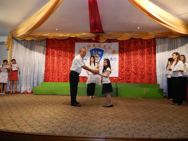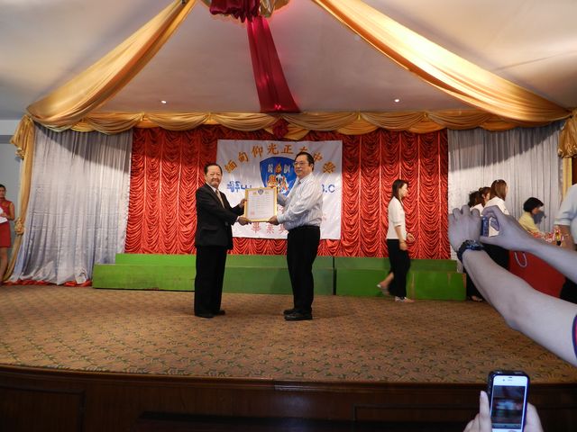 致词完毕,董事长高汉德为本校第二任校长林锦峰先生颁发奖状,对林先生五年来为本校做出的突出贡献表示感谢!接下来毕业班级任老师为小学第九届毕业生、校长助理陈贵平老师和副校长柳永老师为初中第六届毕业生颁发毕业证书。紧接着董事长高汉德接收了毕业生向学校赠送的纪念品,又为本校第一届主题征文比赛获奖者颁发奖状,副董事长许淑宝女士、副董事长及财政叶福财先生、秘书长柯明耀先生、林锦峰董事、陈启明董事、庄明良董事和林秀爱董事为各班学习成绩优秀者颁发奖状。