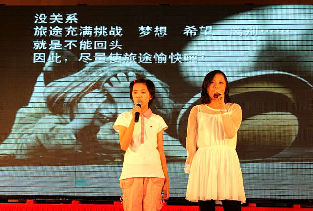 人生有悲欢离合,人的生活像是搭车旅行。2位学生的朗诵“生命的列车”,将人的生活表达得淋漓尽致。“中国式罗密欧与朱丽叶”为题的《梁祝》笑话剧,让全场人们爆笑不已。