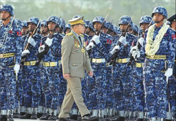 缅甸国防军在3月27日庆祝第73个建军节,总司令敏昂莱在内比都阅兵广场接见各级官兵并发表讲话。敏昂莱强调: