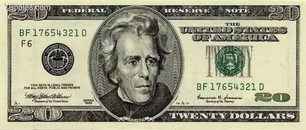 图为20美元上的安德鲁·杰克逊总统头像。