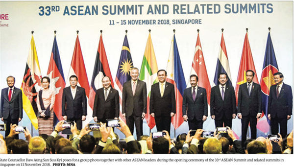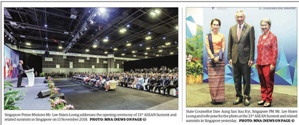 (上图为11月12日,昂山素季应新加坡总理李显龙先生的邀请乘专机前往新加坡参加第33届东盟首脑会议及相关首脑会议。该会议将于2018年11月13日至15日在新加坡举行。国务资政由国际合作部长吴觉丁和其他外交部高级官员陪同。)