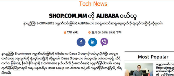 缅甸的购物网站shop.com.mm被网购巨咖阿里巴巴集团收购,阿里巴巴全球“11.11”在线销售的本地版本由缅甸最大的在线购物平台SHOP.com.mm进行。然后今年的双十一结束后,据Shop在一份声明,第一个小时内有超过1,500份订单,其中大部分是通过手机发出的。该公司提供50,000件商品的折扣,超过150,000名用户访问其购物应用程序。三星、小米、华为、Ponds、凡士林、ERKE、阿迪达斯、耐克、美宝莲等主要品牌的折扣高达90%。该公司还为VISA、CB VISA和AGD VISA卡持有者提供高达22%的额外折扣。