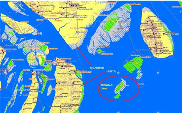 孟加拉湾的一个迎风凹口——再一查,这个岛的意思就是“浮动的岛屿”,大概有115平方英里(300平方千米或3万英亩),原本产生就是20年前从主岛分离开来的,距离另外两个岛Boyar Char Chairman Ghat和Nalchira Gha则分别有35公里与25公里。这个岛位于Htiya Upazila地区(即Meghna河河口),在每年6-9月经常遭遇洪水,并且有完全被海平面吞没的可能性。在这个岛上生存,大部分时间是没有信号的,且一年有多次由于恶劣天气无法与主岛取得联络。