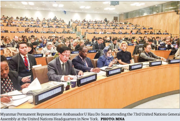 缅甸常驻代表U Hau Do Suan大使在表决前发表了一般性声明,并在表决后对结果作出回应。