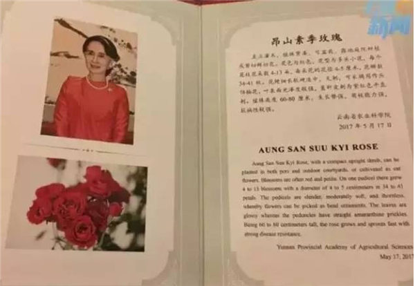 这次亲切握手,让人回忆起去年5月17日,陈豪与昂山素季在云南省会面时,出席“昂山素季玫瑰”的命名仪式。据悉,“昂山素季”玫瑰品种为云南省农业科学院花卉研究所2012年4月选育,由两个玫瑰品种“香淡粉”与“花房”杂交,经4年精心培育而成。