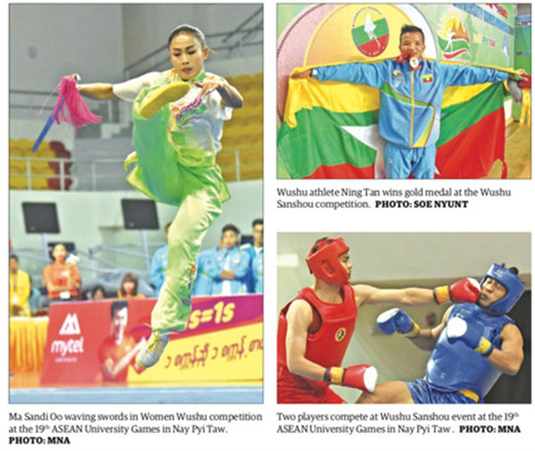 男子散手太极剑比赛(56公斤体重类别)中,缅甸的NineTan获得了金牌。