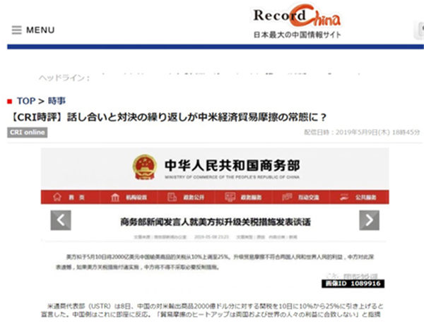 日本Record China网站5月9日转发