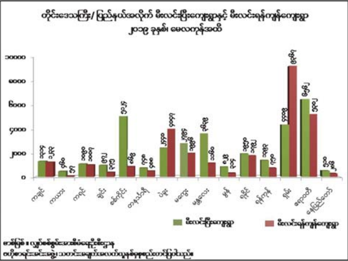 缅文《镜报》在8月6日刊登了2组数据图表,都是与电力部门有关的数据图表。本来根据以往惯例,这类数据图表都会同时在两份官方报纸《缅甸之光》及《镜报》上同时发表,但这一次这图表只在《镜报》上刊登。由于家里只订《缅甸之光》报,而两份官方报纸内容大致上是大同小异,所以有时自己也懒得去寻找对比了。这一次如果不是一位朋友C 君来找我讨论这图表上的问题,我可能都不会知道这些数据了呢。
