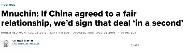 而财长姆努钦则更为直接,向市场喊话“如果中国同意,我们可以一秒钟内达成协议”。
