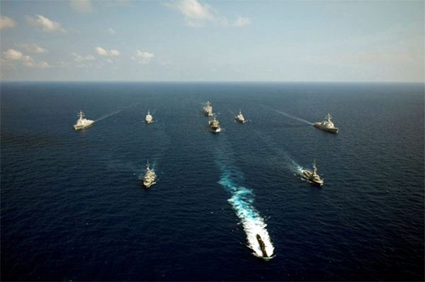 近年来,美国非常重视与东南亚国家举行联合演习。图为美国海军与新加坡海军举行海上联合演习