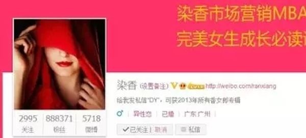 其实,这是一场张冠李戴的误会。很多人说的爱国小粉红大V其实是染香。在微博刚刚开始的年代,在网络上争论社会和政治议题的主要都是男性。而当时出现了一个使用面纱美女头像的账号叫“染香”。这个账号一出现,立刻就引起了很大的关注,且该账号的言论主要是爱国和反对亲美谣言的。