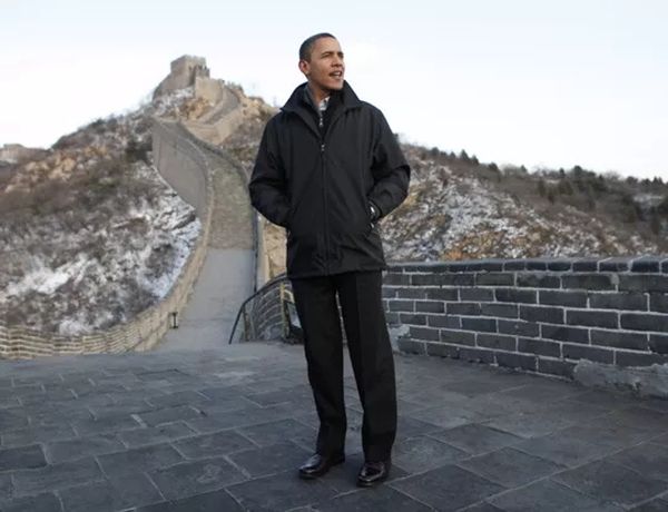 登上中国长城的奥巴马