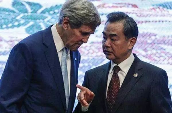 美国国务卿克里与中国外交部长王毅