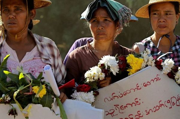 ● 2014年12月25日,缅甸蒙育瓦村民纪念在警民冲突之中丧生的女子/东方IC