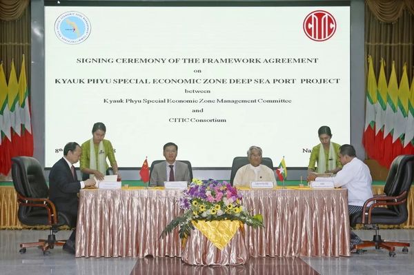 2015年底,登盛政府赶在任期结束前宣布了中信领头的联合体中标缅甸西部皎漂经济特区深水港和工业区开发项目。昂山素季政府上台后,中缅双方重新展开协商。2018年11月,在缩减项目规模与增加缅方持股比例后,中信与缅甸政府签署了13亿美元深水港口的框架协议。