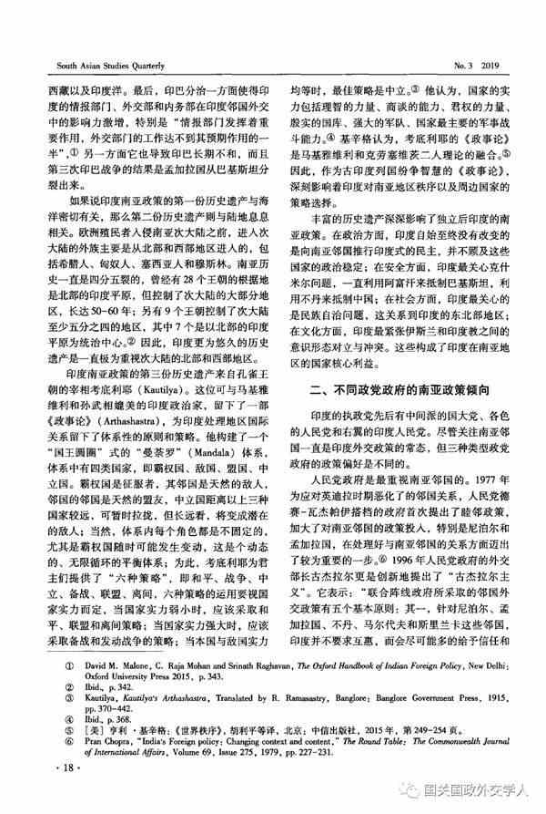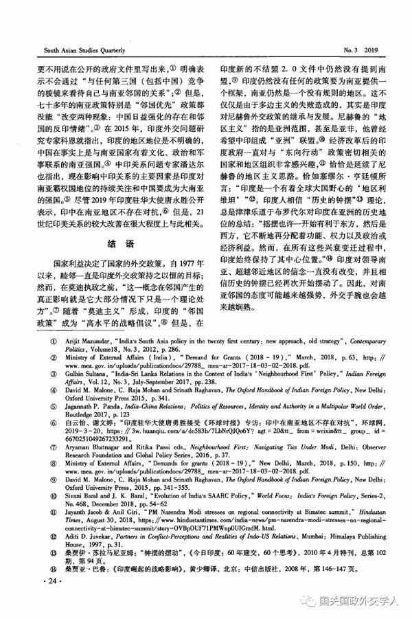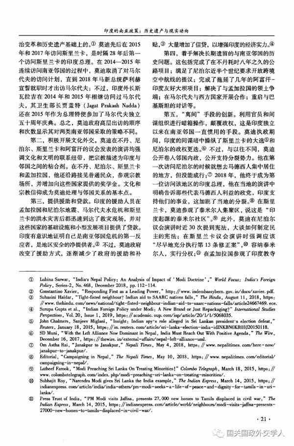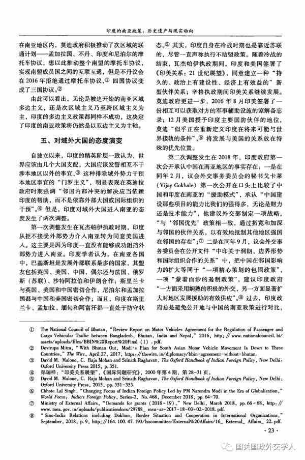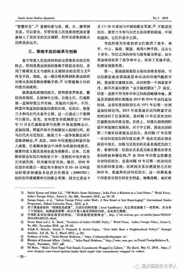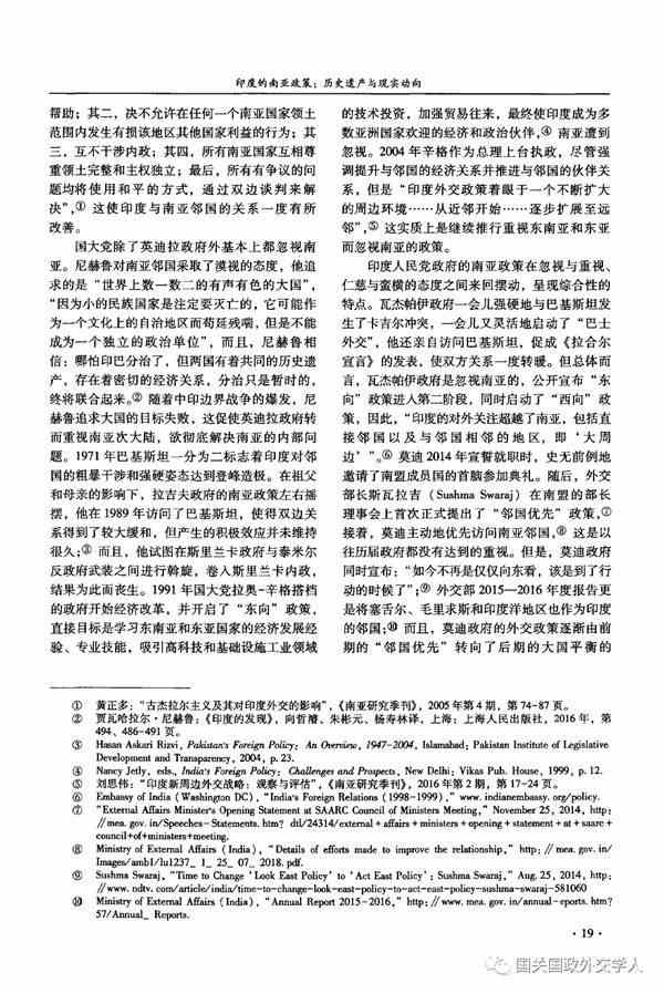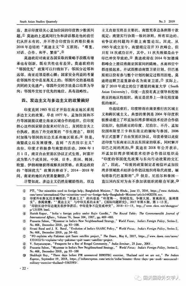 关键词:印度; 南亚政策; 历史遗产; 莫迪