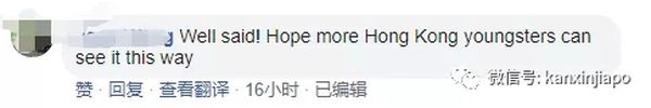 翻译:说得好!希望更多的香港年轻人可以看到。