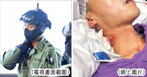 🔺 10月13日,一名香港警察在执行任务时遭暴徒割伤颈部 图源:港媒