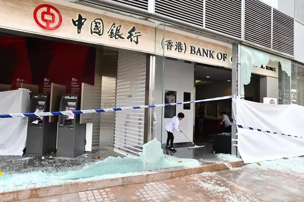 🔺 中国银行(香港)遭到暴徒破坏 图源:《星岛日报》