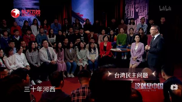 黄智贤:这就是我们在台湾每一天都好像在做敌后工作、可是又觉得必须要做的原因。曾经有很多观众跟我讲,他已经有20年不敢在公开场合说自己是中国人了,你可以想象那种荒谬吗?我们的体制就是一个中国的,台湾就是中国的领土,在台湾有自己的法律体制,但他不敢公开讲他是中国人。