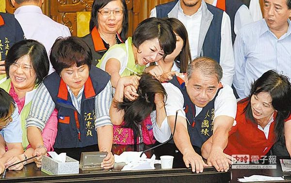 甚至有可能白天打一打,晚上大家继续喝酒,那也都事实,为什么?因为我们有共同的利益,我们打是因为我代表国民党、你代表民进党,民进党有一些支持“台独”的人,所以你要演给他看,证明你很努力要“台独”。我是国民党,所以我要骂民进党。等记者摆好camera了,来,开打。打完以后我们还有一些法案要审,可能我的金主跟你的金主是同一个;在台湾有很多好笑的事情是,国民党跟民进党的金主是同一个人,比如我是企业家,我有钱,给国民党300万,给民进党500万,给亲民党100万,我给谁多少,我全都买。所以我黄智贤要通过的法案,你们都乖一点,不要给我玩真的,吵吵闹闹但最终一定要过,三天以后要过。这是实际发生在台湾的事,同样也发生在美国。