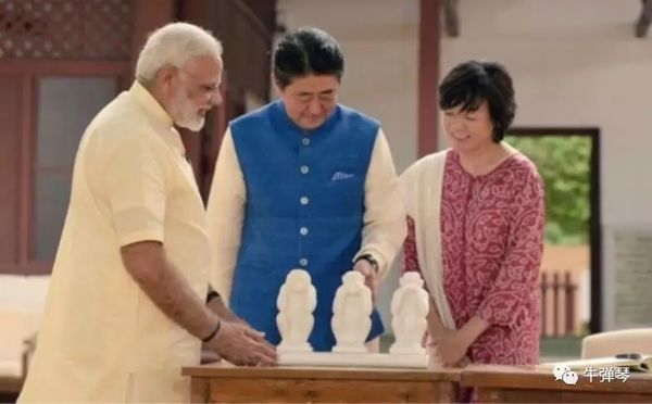 三年前,莫迪送安倍的“三不猴”,分别是:不听,不看,不说,嗯就这三个顺序。