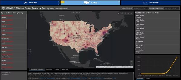 截至当地时间4月20日,约翰·霍普金斯大学官网发布的美国疫情情况