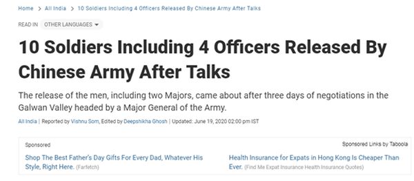 中方最近两天也连续采取动作。比如,《印度教徒报》等多家媒体在6月19日援引安全部门消息人士的话报道称,中国释放了10名3天前在边境冲突中被俘的印度军人。这被印度方面认为是在“中印边界问题全国党派大会”前释放善意。