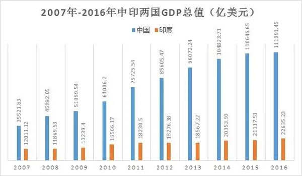 1950年印度人均国民生产总值是中国的2.85倍;到21世纪第二个10年,中国GDP和人均GDP指标均为印度5倍左右。