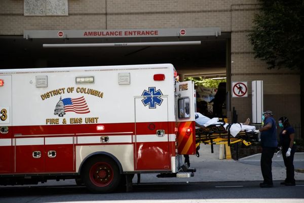 ▲资料图片:当地时间5月13日,在美国华盛顿的乔治·华盛顿大学医院,工作人员运送患者。(新华社)