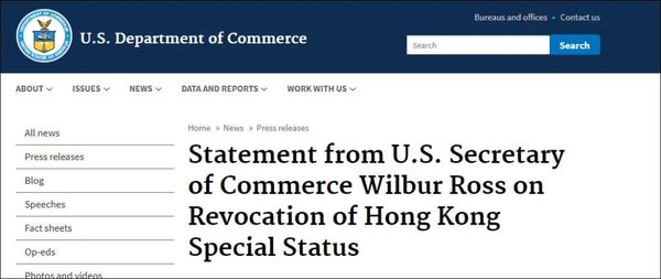 在香港国安法通过和实施前夕,6月29日,美国务卿和商务部长相继发声,宣布禁止向香港出口国防和军民两用产品,暂停对香港提供出口许可证豁免等特殊待遇。