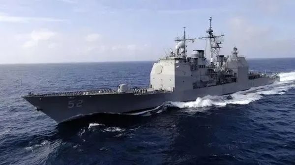 美国海军"邦克山"号巡洋舰到南沙群岛挑衅,在我南薰礁附近开展航行活动。(资料图)