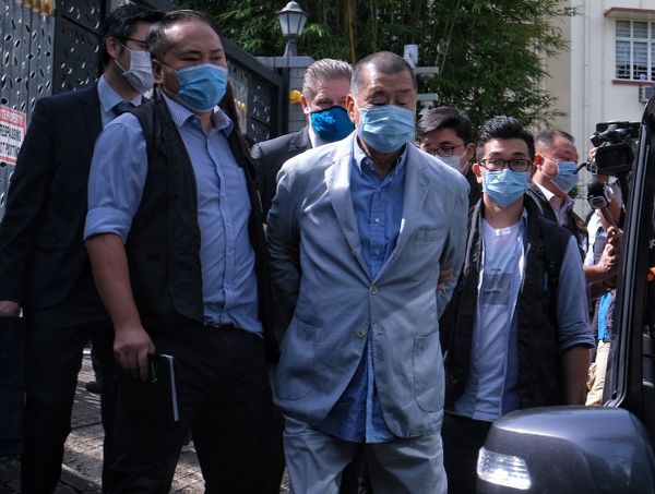 在媒体拍摄的照片上,黎智英戴着口罩,眼睛低垂,神情萎靡,西装上衣和裤子皱皱巴巴,正是一副囚犯该有的样子。黎智英大概自己心里也很清楚,这一次他不可能还像以前那样,早上进去,晚上就能出来了。