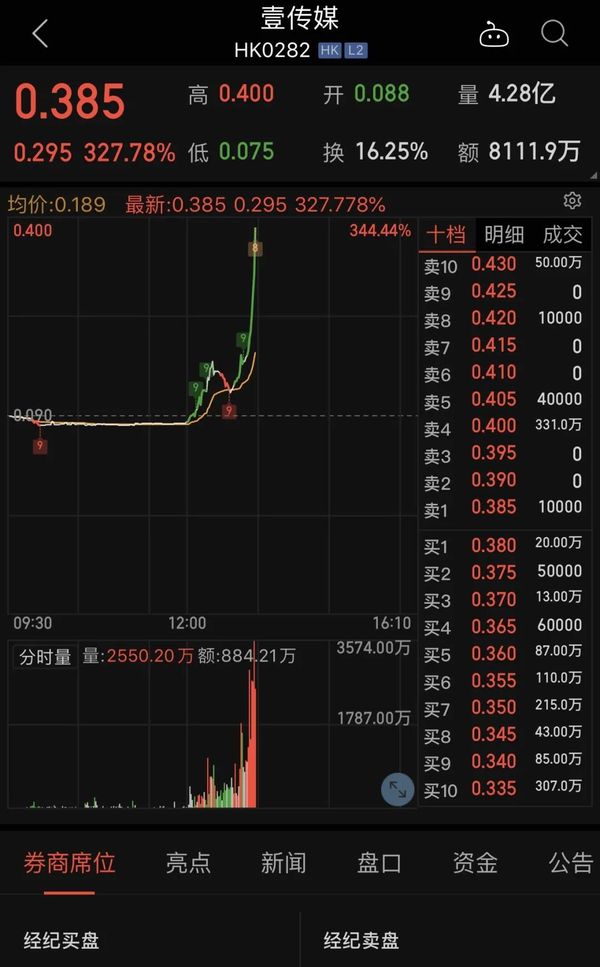 就在今天午后,港股壹传媒传来异动,从早盘的跌16%直线拉升,一度大涨344%,创下上市以来的最大涨幅,收市时还涨了183%。也就是说,黎智英被抓了,他的账面财富还涨了几个亿。