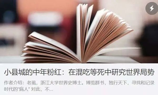 前不久的时候,一个浙大世界史的博士,在公众号里发了一篇文章《小县城的中年粉红:在混吃等死中研究世界局势》。
