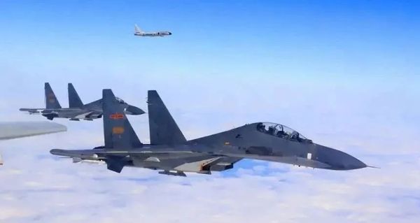 | 中国空军苏-30战机及轰-6K轰炸机绕台巡航 图源:中国军网