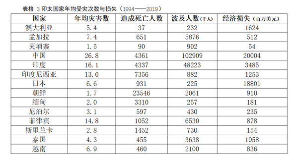 表格 2 印太国家年均受灾次数与损失(1994——2019)