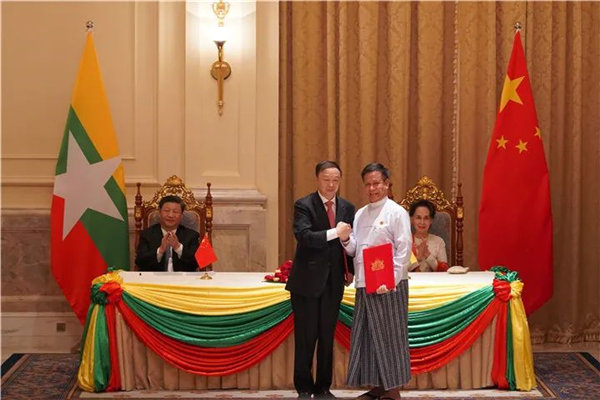 ▲ 2020年1月18日,中国国家主席习近平在访缅期间与缅甸国务资政昂山素季共同见证了皎漂特别经济区深水港项目协议交换仪式。(来源:新华网)
