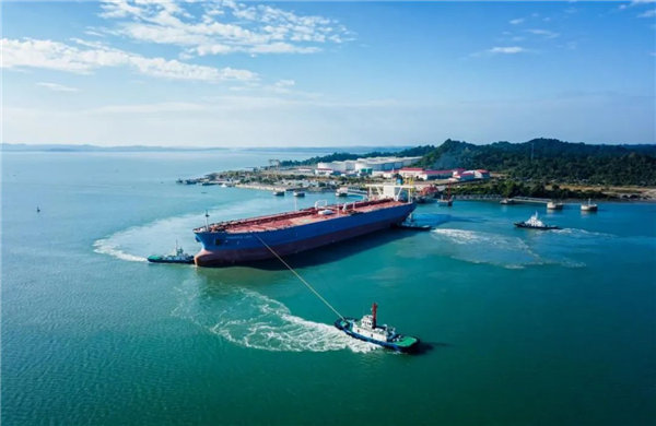 ▲ 巨型油轮在皎漂市的马德岛港卸载原油后离泊。(来源:人民网)
