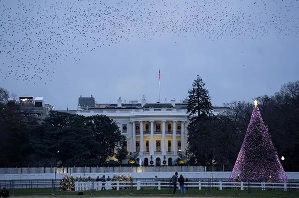 2020年12月4日,在美国华盛顿拍摄的国家圣诞树和白宫。图|新华社