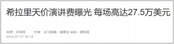 比如在2013年到2014年,希拉里在高盛、摩根斯坦利、德意志银行分别做了一场演讲,每次演讲的出场费都高达22.5万美元,一共讲话三个小时,67.5万美元就进账了。