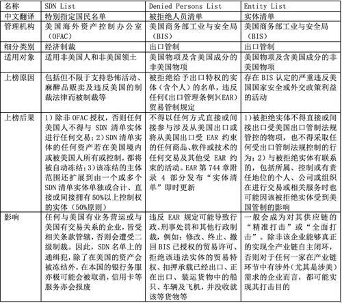 14014行政令授权冻结所有位于美国或美国持有的财产,以及被制裁者的利益。这意味着被制裁者将无法获得或使用包括银行资金在内的所有财产,除非相关人员获得美国海外资产控制办公室(OFAC)的授权,这实质上是禁止美国与被制裁者的所有交易。同时,新的出口管制措施很可能会将缅甸国民和实体机构列入美国政府的实体名单或“被拒绝人员名单”。美国商务部工业和安全局负责这些出口管制,相关规定包含在该部门的《出口管理条例》中。(看到这里细心的读者应该会发现已经出现了三种清单,小编帮忙做了梳理~~)